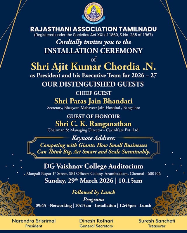 Copyright © 2017 Rajasthani Association Tamilnadu