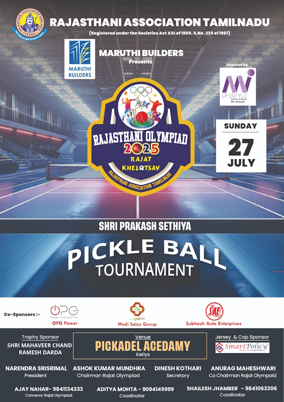 | Rajasthani Olympiad 2025 – Pickleball Tournament 27/07/2025 |